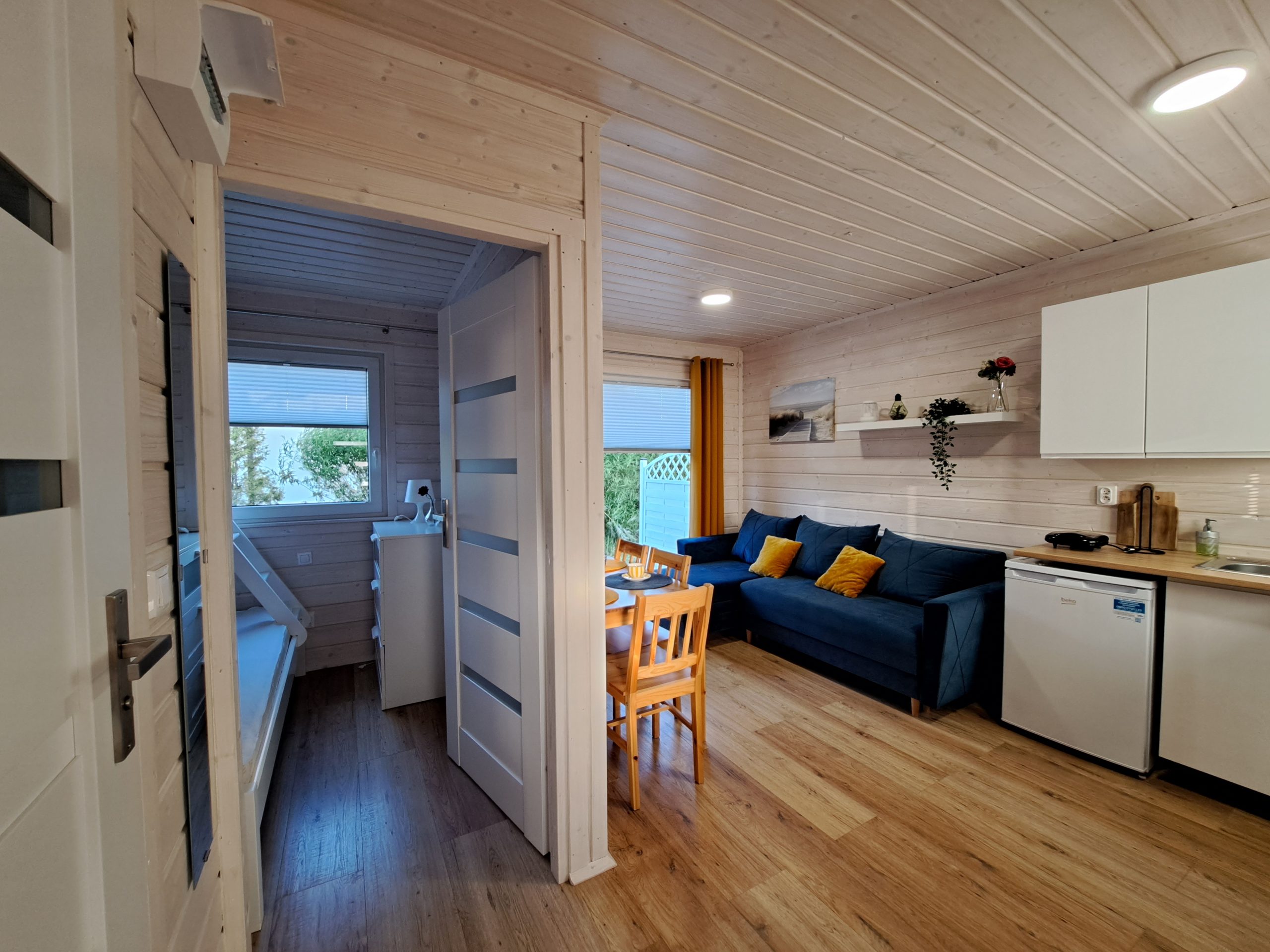 – salon z rozkładanym narożnikiem, mogącym służyć jako dodatkowe miejsce do spania dla dwóch osób